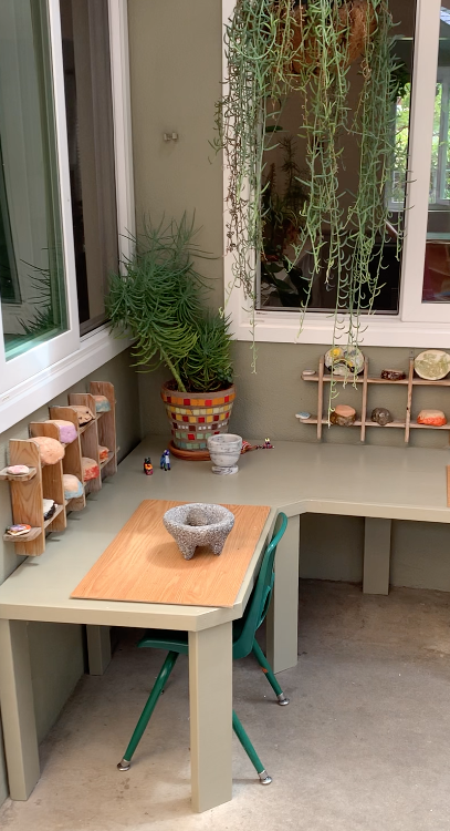 Every year the teachers set up their environments to honor the developmental stages and interests of the children. With all the changes that surround us right now, this constant ritual that guides our work is keeping us focused as we design spaces that reflect the new mandates of physical distancing and cleaning routines. It will always be our mission to find ways to make connections and build relationships with each other and environments that support creative engagement with open ended materials that play a big part in this principle. Take some tips from our work to duplicate at home – those of you online with NSW can set up home areas in the same way!