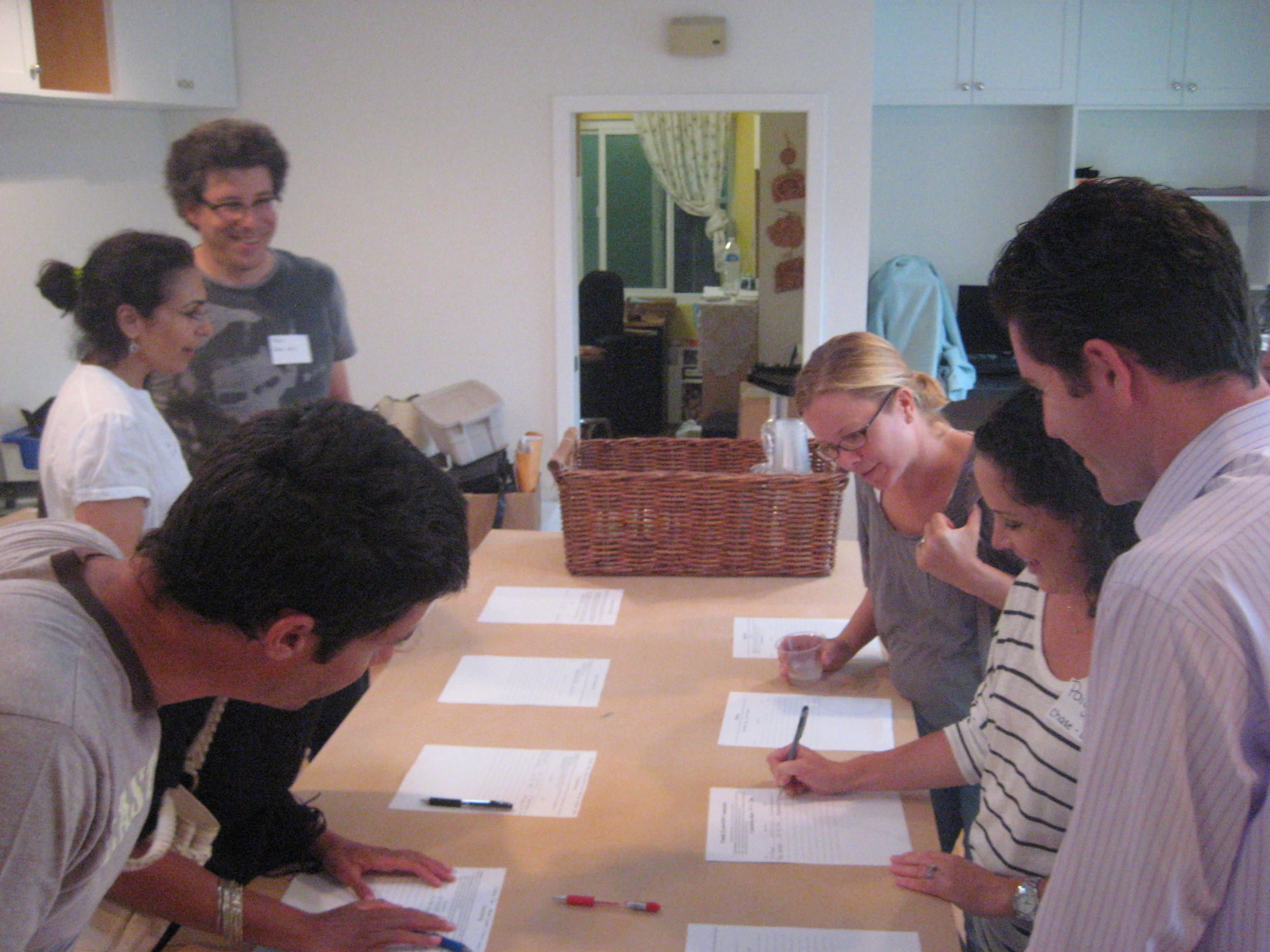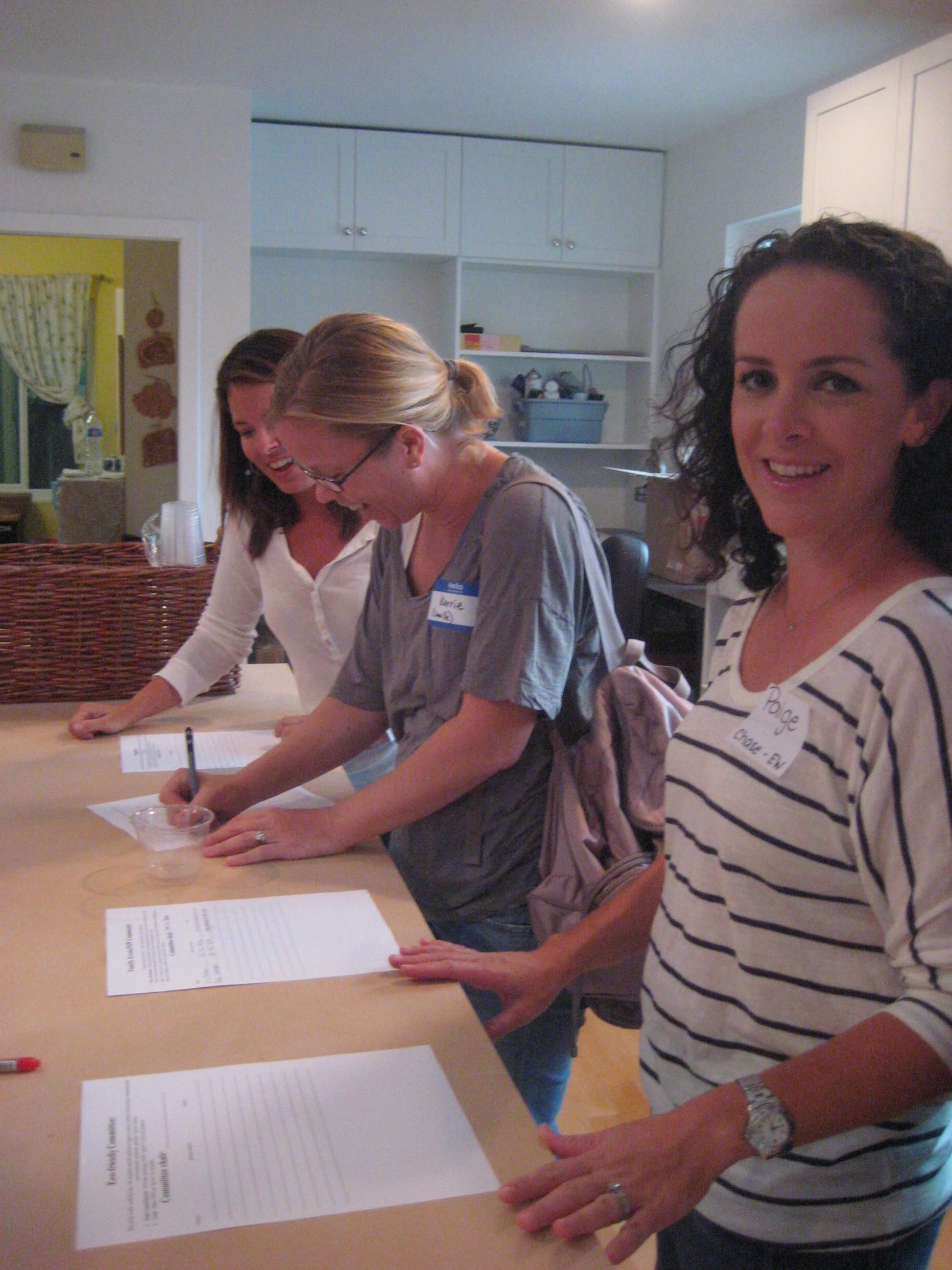 We used our new kitchen for the first time! Parents gathered around the unfinished work table to sign up for various committees.