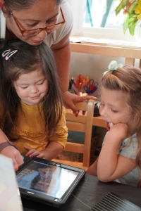 We also noticed this group of children already coming into the classroom with an awareness of communication through technology like cellphones and computers. Considering that we are in the midst of an investigation with the West Coast Collaborative on the ‘Intersection of Nature and Technology’, we planned to use these interests in supporting this new class group in making early connections with each other.