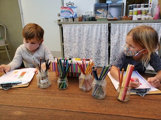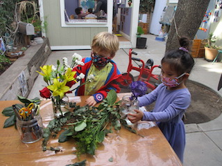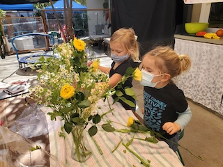 Thank you to Arya’s and Wiley’s family for bringing festive bouquets of flowers this week. These bouquets beautified both our indoor and outdoor spaces. Flowers freshen up our small tables and then offer exploratory investigation along with representation possibilities as they dry out.
