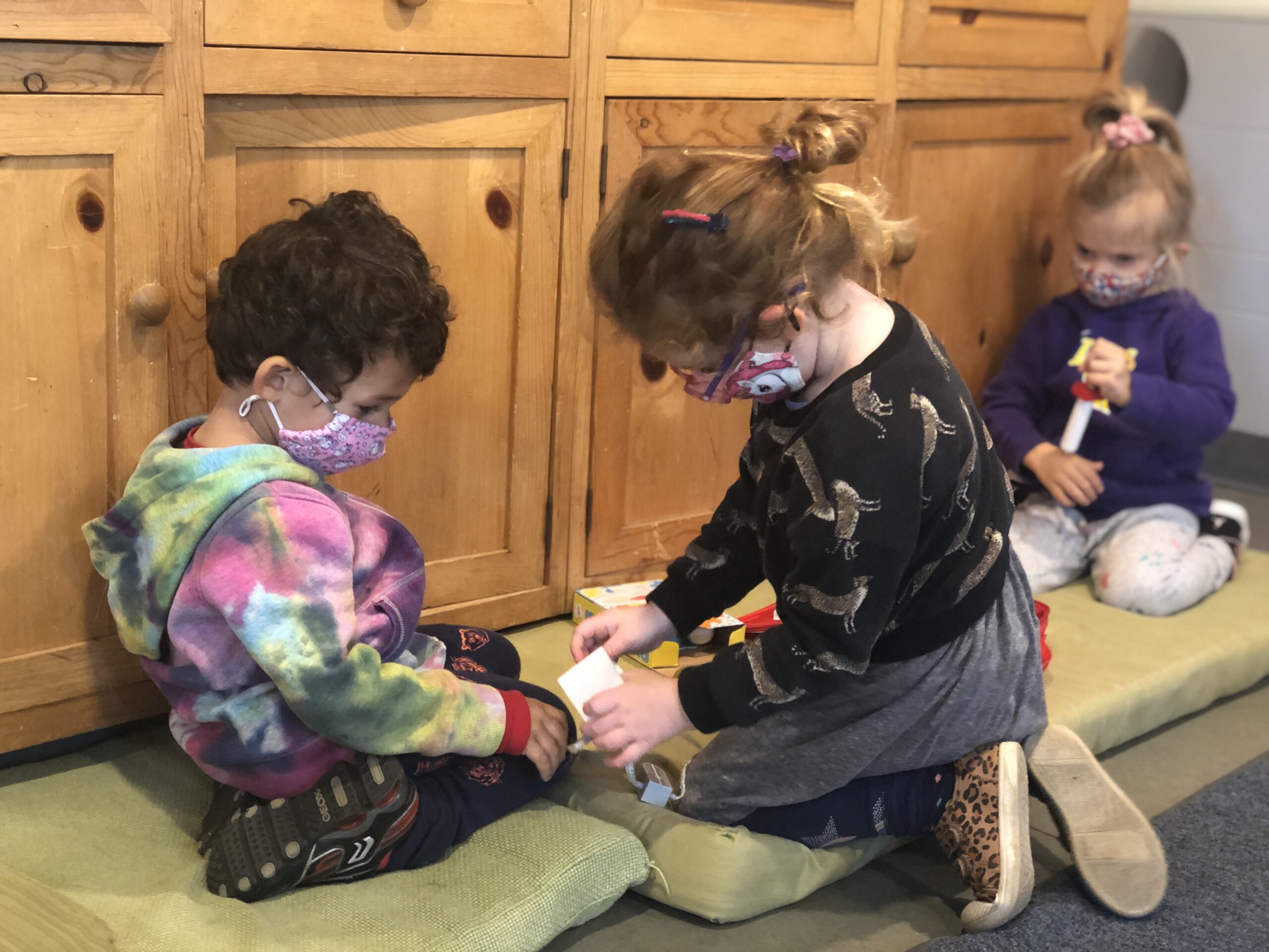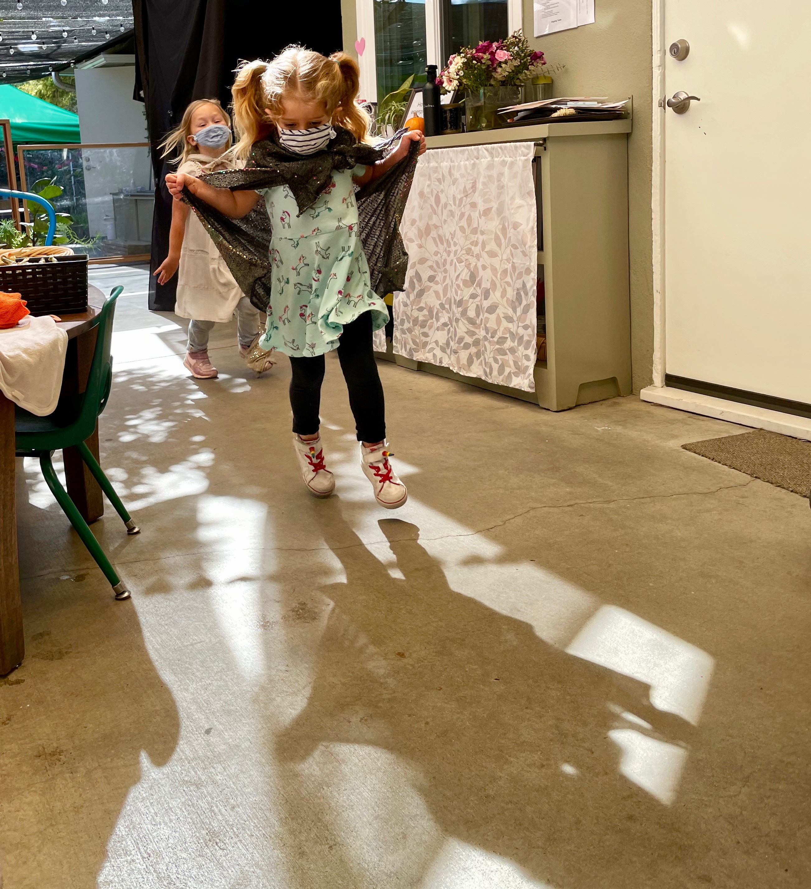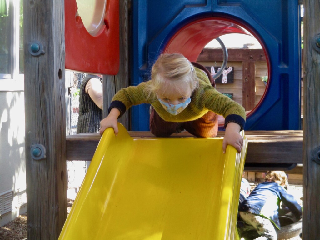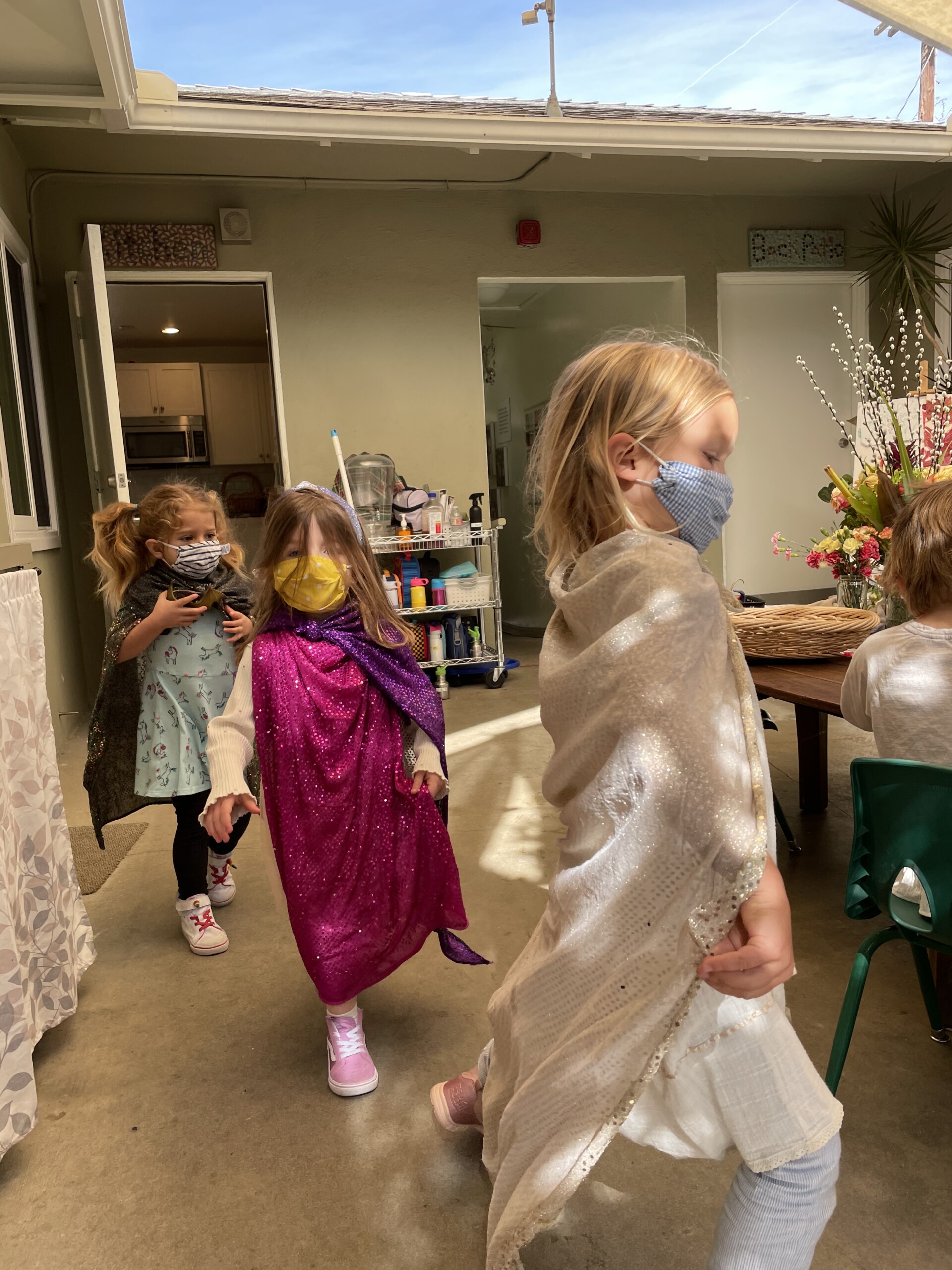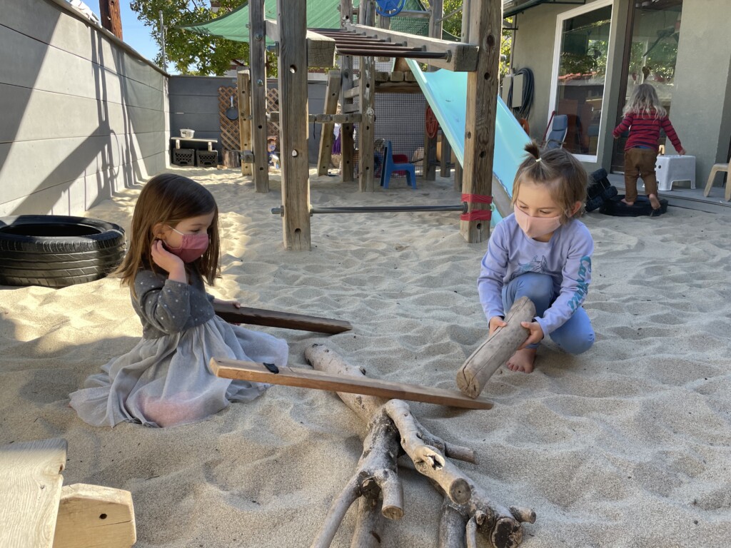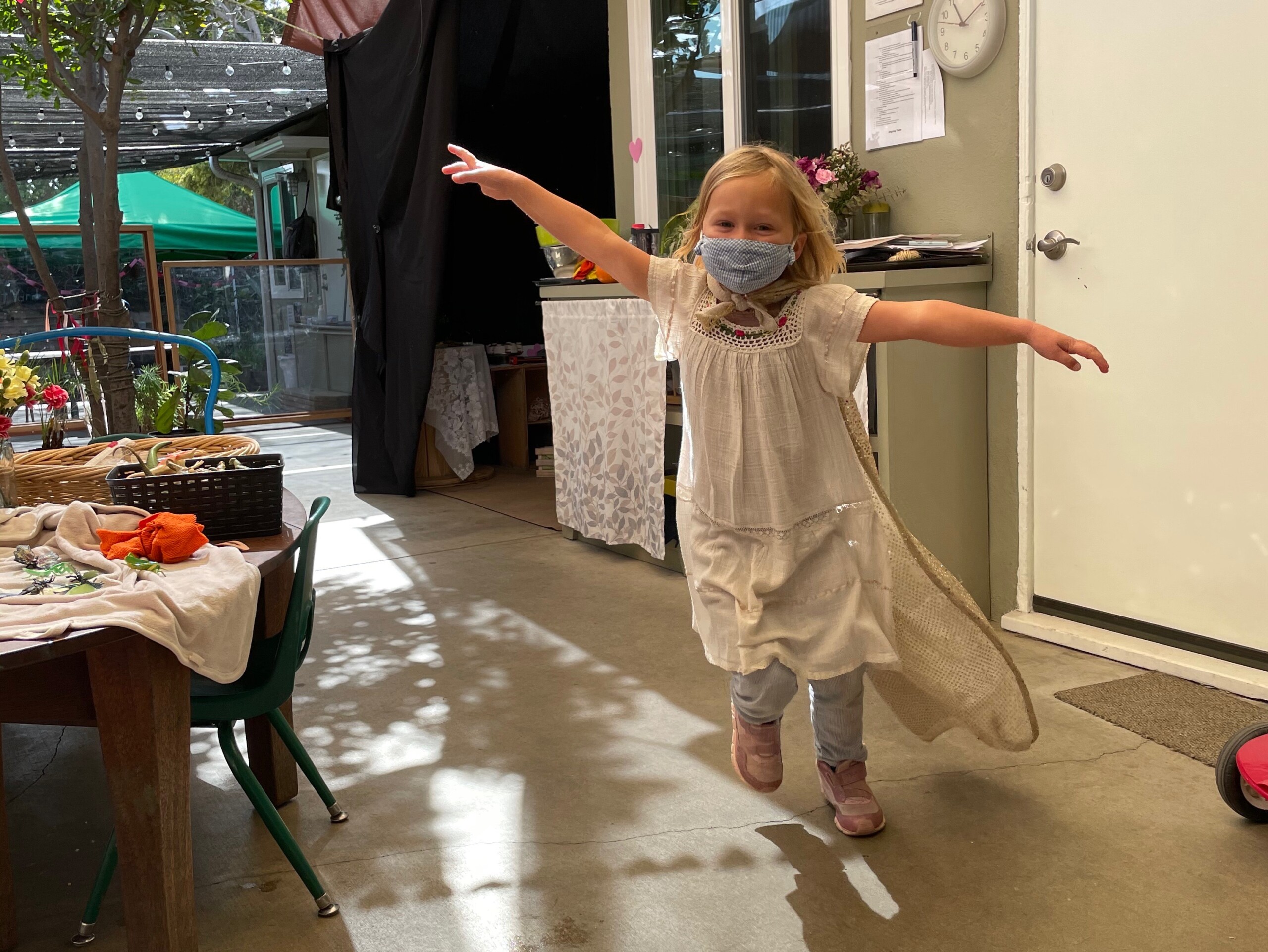 Free play provides us with a wonderful window into the minds of our children. Engaging in unstructured play time encourages children to use their imagination, boost their physical strength, and learn to effectively communicate. Different play schemas merge together as their play evolves. The Cilantros often integrate or alternate between family and fantasy roles. Opportunities for problem-solving transpire as they figure out– what is their possible new role, what are the roles their peers are taking, and how do they contribute to the narrative. Time and again children are faced with how to approach a disappointing or frustrating situation as they navigate through their play. The challenges that arise are opportunities to develop the skills on how to regulate their own emotions while becoming sensitive to the values and needs of others. When children participate in pretend play that requires more complicated interactions with their peers (cooperation, collaboration, sharing, negotiating) they are practicing and strengthening their abilities to connect to other people in healthy, productive ways that will benefit them their entire lives.