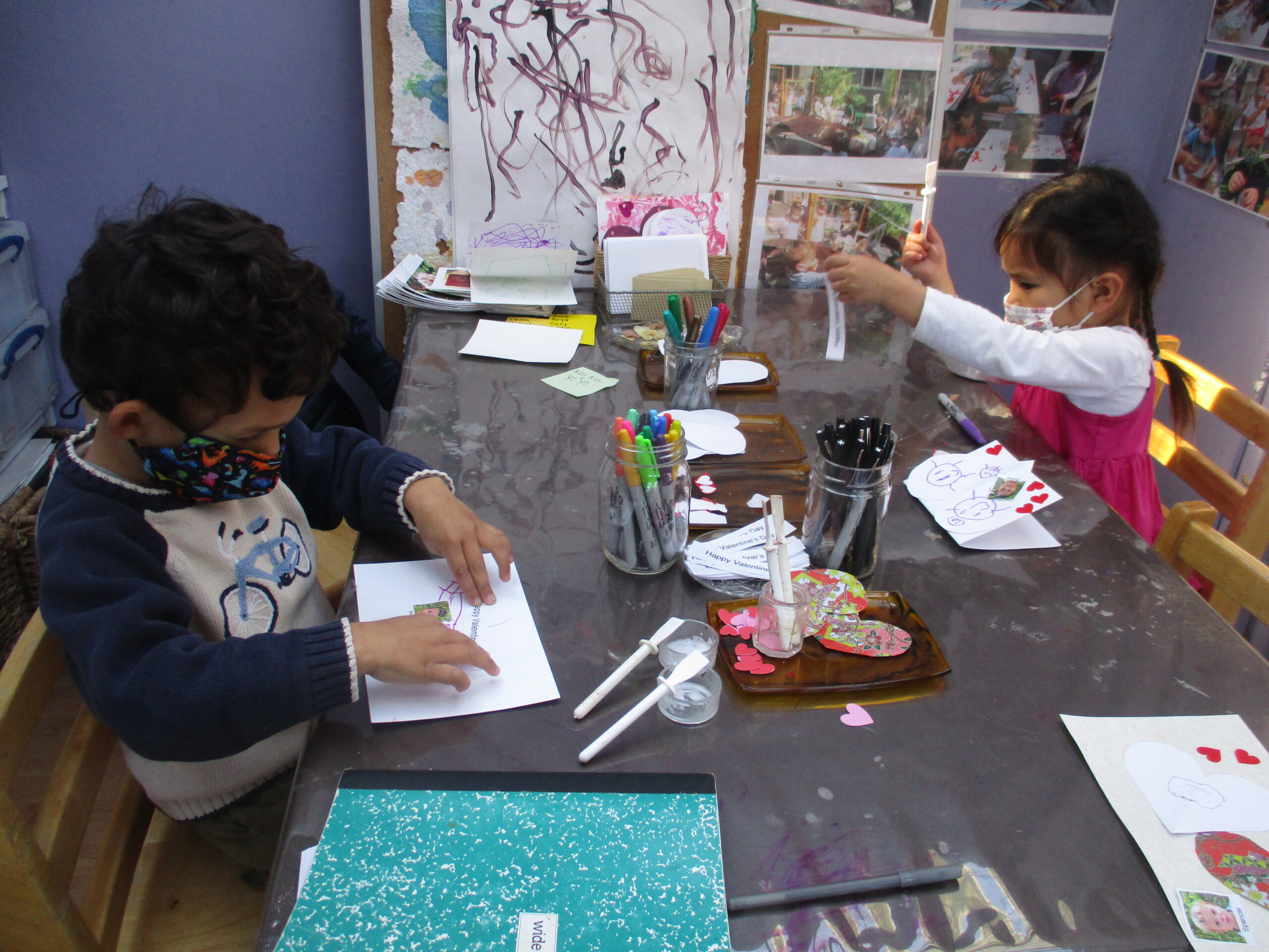 The children’s excitement carries on as they make their love tangible through card making! The West Wing teachers are planning to continue facilitating more card making and note sending at school after Valentine’s Day. We will keep exploring as a group the ways that we can send messages (including messages of affection!) to each other. Through this work, we celebrate love and our deepening connections with one another every day!