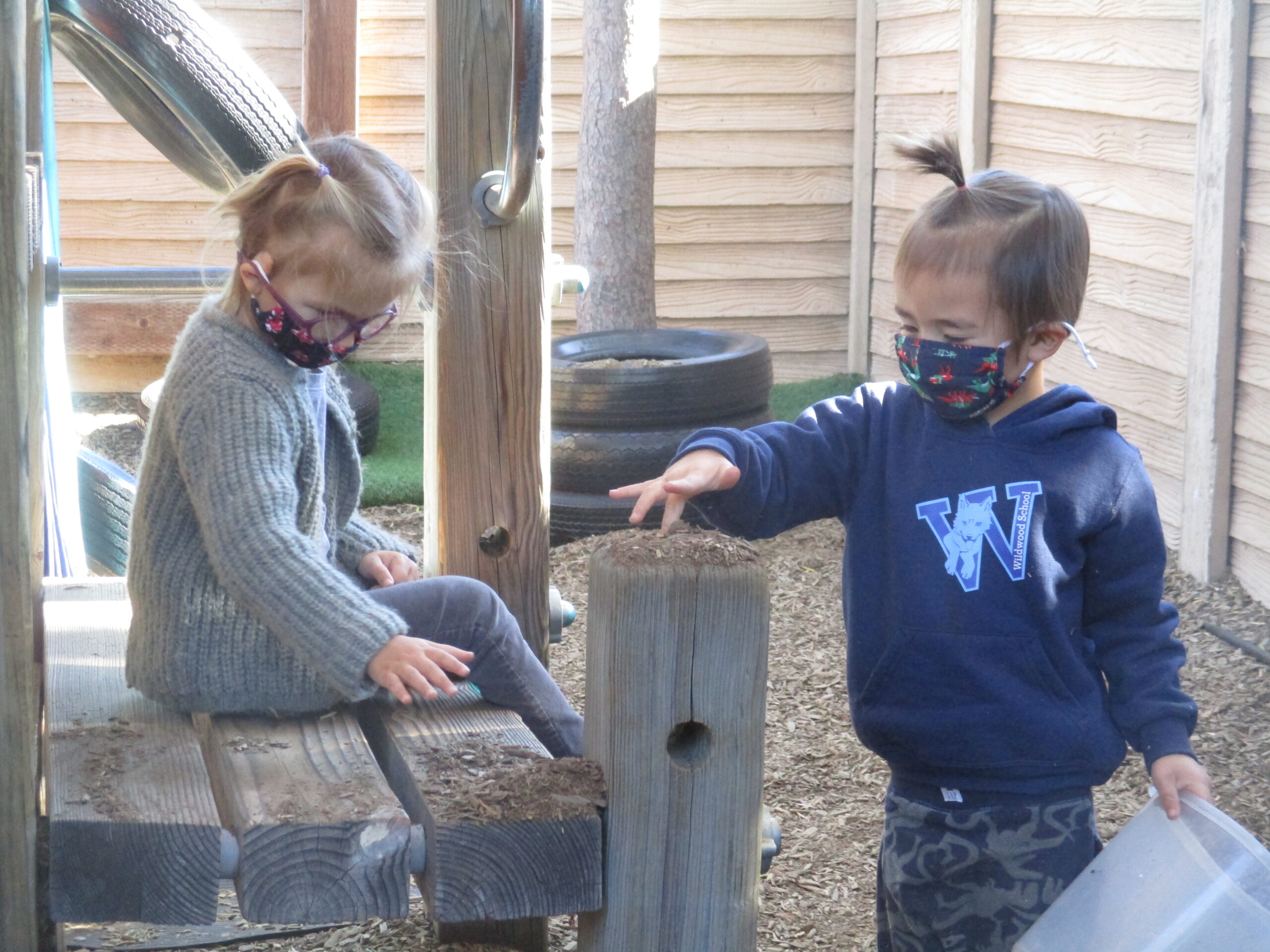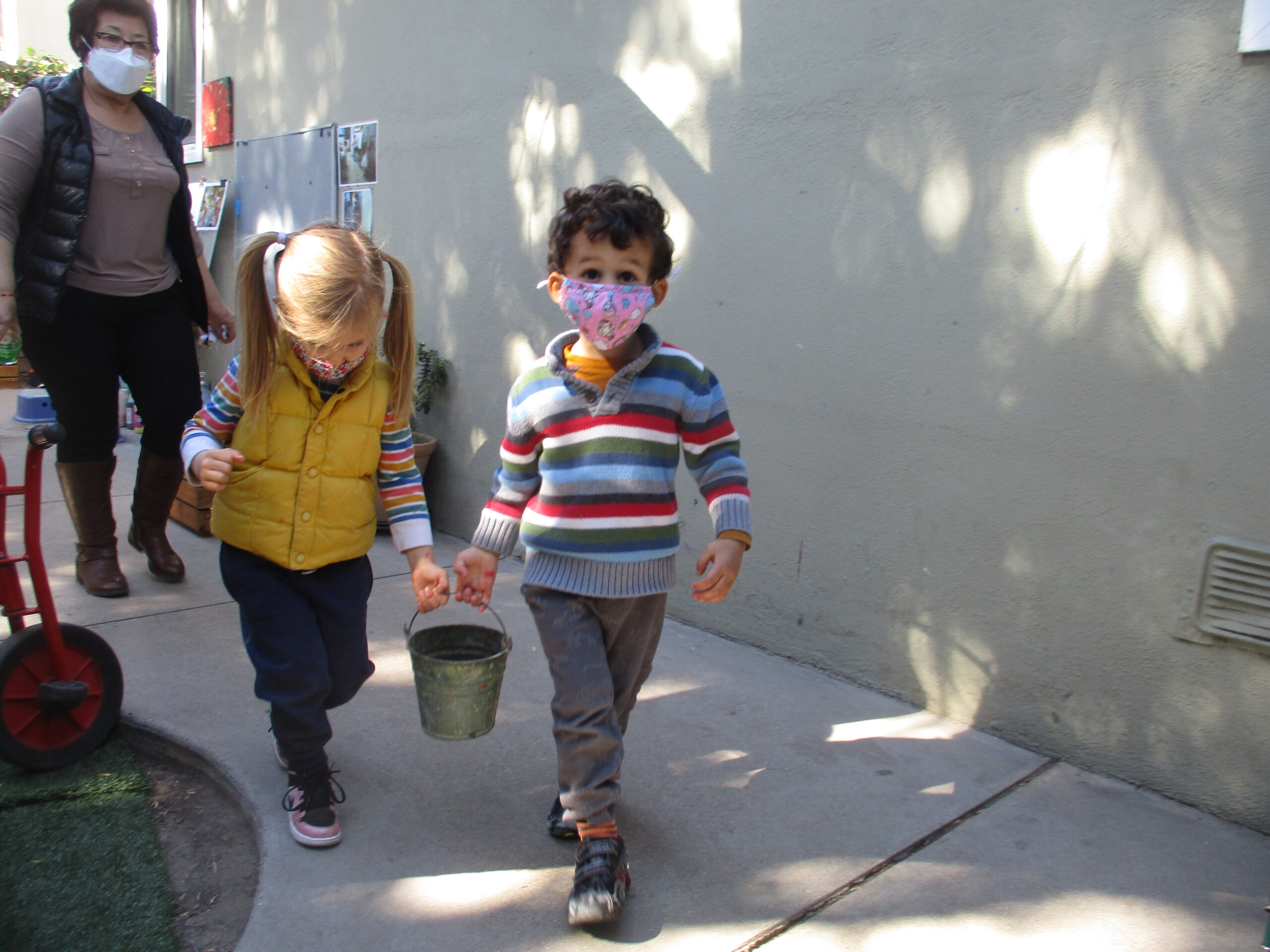 Our week was spearheaded by the children’s imagination and pretend play! We allotted longer time for free unstructured play to nurture and extend close relationships. In the Middle courtyard, fantasy play encouraged children to play cooperatively in larger groups. Through narrative, movement and sounds, the children expressed what special powers their superhero personas possessed with great energy.