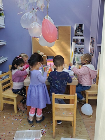 This week the Cilantros welcomed Saturn and quickly engaged with her to explore all the possibilities that our spaces have to offer. Together the children worked with Saturn to build structures with colorful magnetic sticks and write in their journals. The Living Room Area of the classroom hosted lots of dance parties while the House Area provided the children an opportunity to engage Saturn in all their different dramatic role playing narratives.