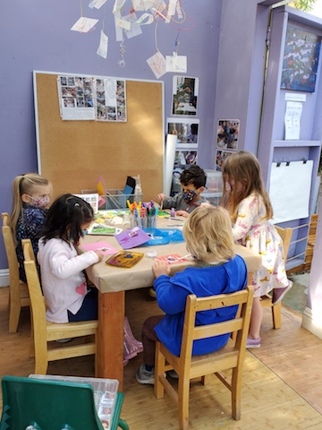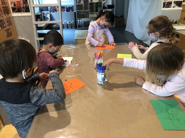 One of the goals in card making is to awaken the curiosity of learning more about the children from the other pods through this messaging exchange. This interest in spreading and receiving love is echoed in one of the songs that Flora has introduced to our group in our Morning Meeting: https://www.youtube.com/watch?v=sAKh94vBqos