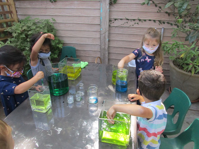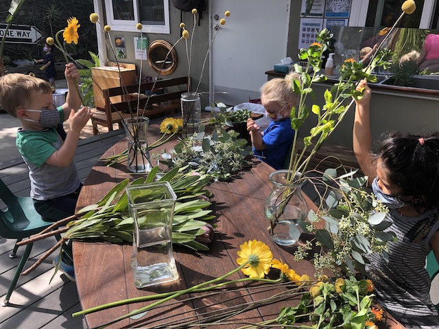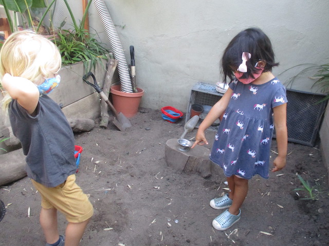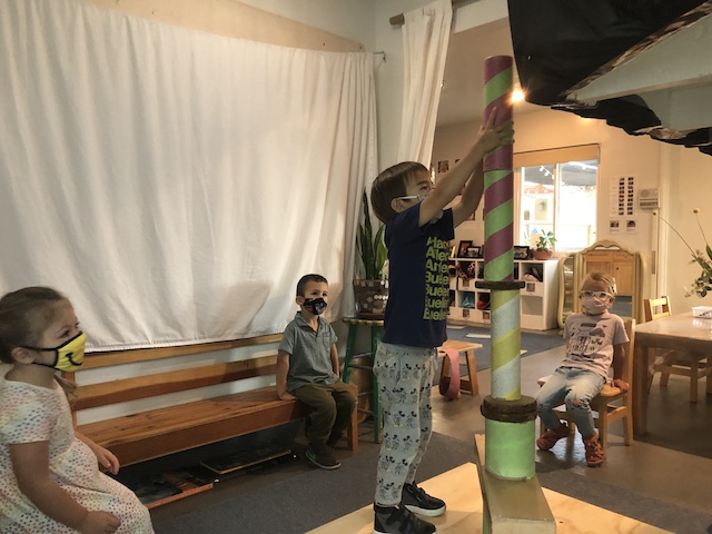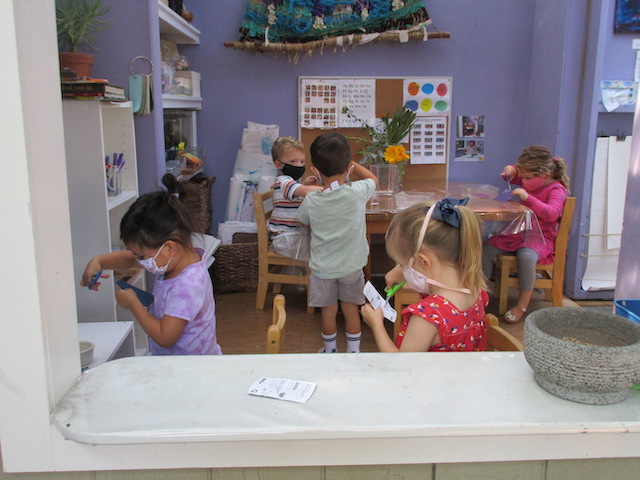 The Cilantros continue to gift each other in spaces and play. The House Area play entailed special deliveries. Outside, they created watercolor wrapping paper that will hold a gift for the Dandelion group. The Cilantros were surprised when we received a letter from the Dandelions inquiring what we do throughout our day. The letter also asked us what animal we like to be when we’re listening and moving to the song “Animal Action”. “See How the Garden Grows”, sung by Courtney Campbell, inspired one of the many steps the children did in planting Cilantro seeds: Cutting toilet paper rolls, filling the rolls with soil, planting the seed, and “showering it with love!”