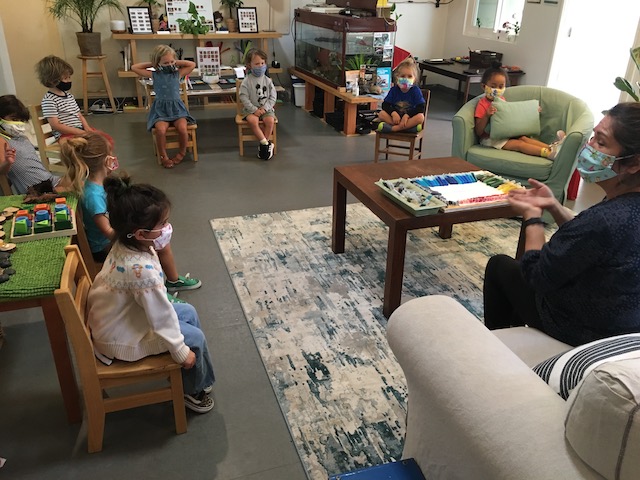 The Cilantros continue to gift each other in spaces and play. The House Area play entailed special deliveries. Outside, they created watercolor wrapping paper that will hold a gift for the Dandelion group. The Cilantros were surprised when we received a letter from the Dandelions inquiring what we do throughout our day. The letter also asked us what animal we like to be when we’re listening and moving to the song “Animal Action”. “See How the Garden Grows”, sung by Courtney Campbell, inspired one of the many steps the children did in planting Cilantro seeds: Cutting toilet paper rolls, filling the rolls with soil, planting the seed, and “showering it with love!”