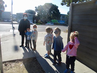 This week was also the Dandelion’s first neighborhood walk. Thank you for signing the permission slip. These walks are always adventurous. Seeing the neighborhood through the eyes of the children is like seeing a new neighborhood every time. Because of the children’s constant interaction with our Front Yard tree, Flora invited the children to think about what kind of other trees we would see on our walk. Some of their answers were: Big trees, little trees, trees with leaves and trees without leaves. They also were hoping to find “climbing trees.” Overall, it was a good first walk where we got to practice some important safety rules. For example, we made the following agreements as a group: walking with the group, staying with your partner, looking both ways when crossing the street,and using our hands as our “stop” signs, to name a few. Next week, we are planning on taking the next group of Dandelions who didn’t go yet.