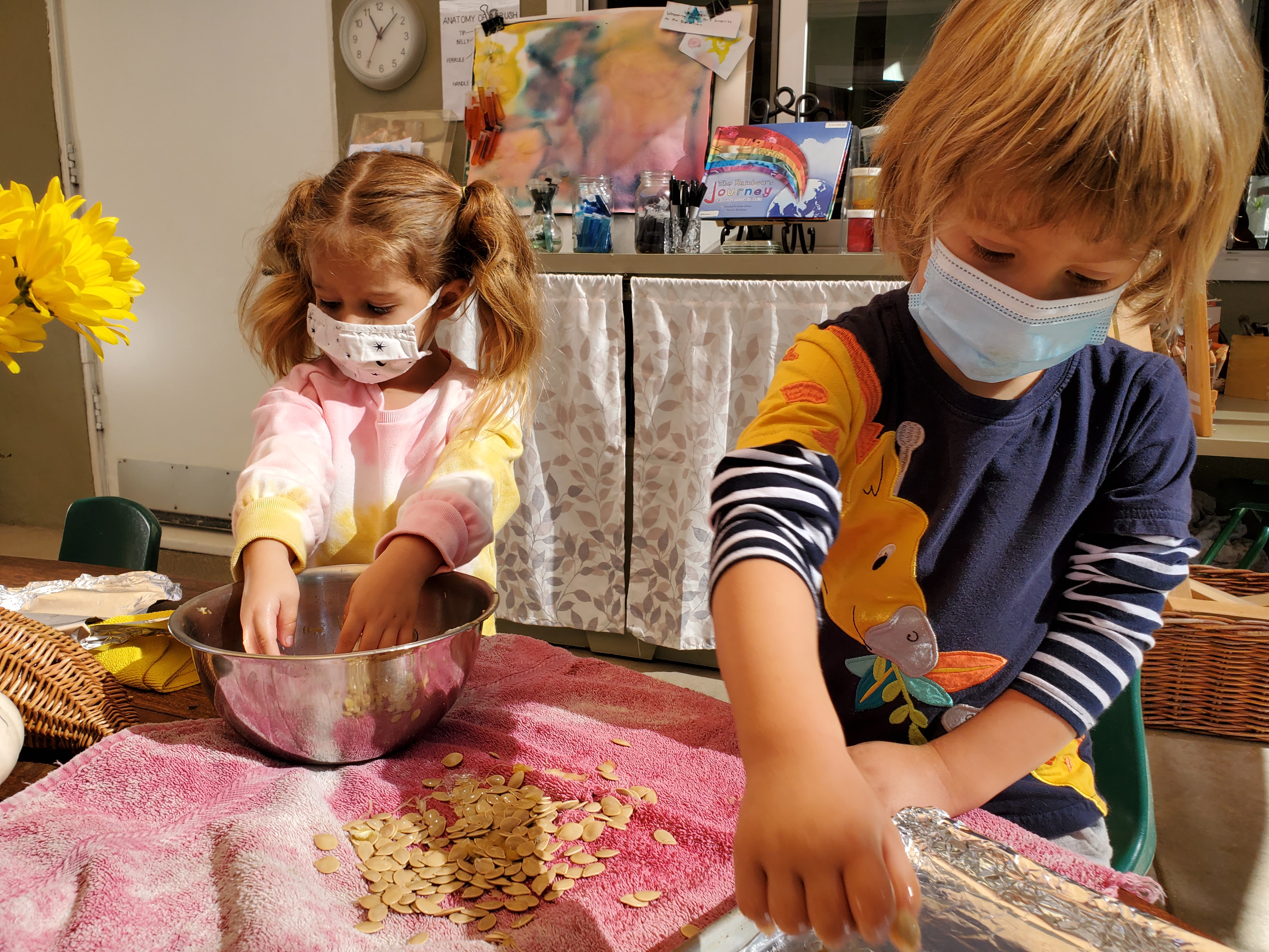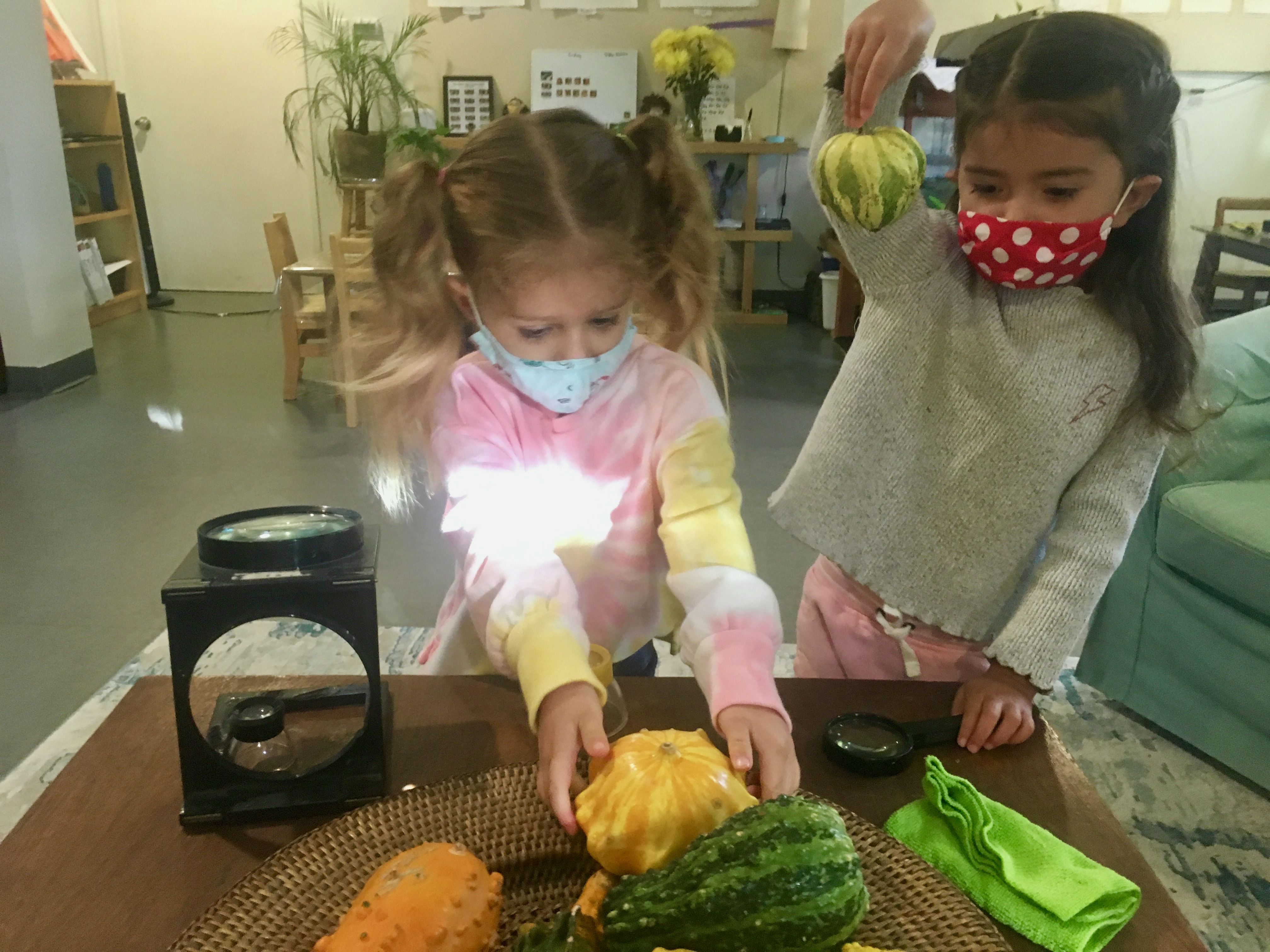 The Dandelion families contributed so many wonderful items to our classroom this week! It is really looking like Fall in our indoor and outdoor spaces with all of the flowers, pumpkins, gourds, wheat stalks, seed pods, etc. Thank you to Arya’s and Oona’s families for the flowers and Spencer’s, Zoe’s, Cary’s and Olivia’s families for the gourds, pumpkins, and other autumnal natural materials.