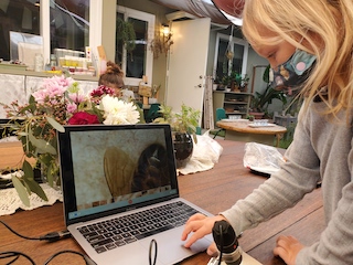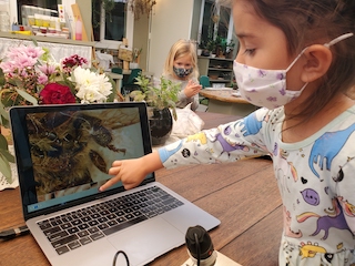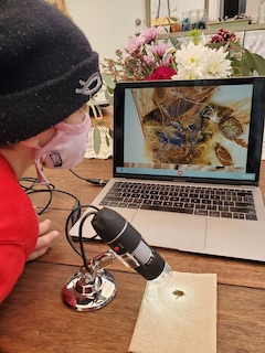 This week, we again brought out the digital microscope to investigate a mystery insect that was found on our outdoor rug. Luka wondered if it was a fly and Jack thought it might be a bee. The group thought that if we found a stinger it would most definitely be a bee. Together, we searched for a stinger and though no stinger was observed, the two opposing ends of the insect were quite spectacular. To document this observation, the group was introduced to new technology that allowed them to use the computer as a tool to capture their observation in a photograph. This is all very new and we are excited to continue these moments where we can see things through a new lens.