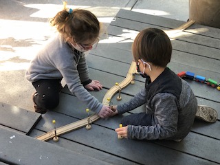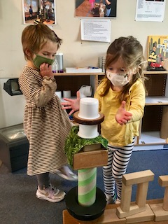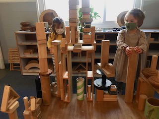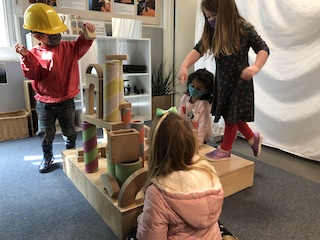 The Dandelions also had the opportunity on Thursday and Friday to explore their creativity collaboratively through building in the Exploration Space. The children used the blocks to build houses, castles, and roads for the wooden figurines (5 people, 1 ghost!) who live in the space. As the Dandelions built with the blocks, they also built narratives together; one friend would start to tell a story, and then another friend would add on to it. We continue to be interested in seeing where these stories take us!