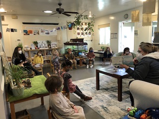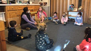 On Monday, the Dandelions celebrated Evyn’s 4th birthday, which was on January 24th. In the New School-West tradition of sharing a birthday book with the community, Evyn brought in a couple of her favorite books — Pirate Pups and The Sneetches — for us to read at Morning Circle. Before we started reading, we invited all of the Dandelions to go around the circle and share a favorite memory that they have of Evyn: