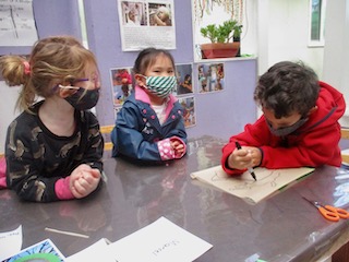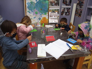 One of the strategies we keep in the back of our heads as we work with children is ways to Strengthen the children’s value for thinking, bridging and contributing during reflection meetings. This week, this strategy has been helpful during our card making for others in the paper house. On Monday, the children made birthday cards for Evyn. On Wednesday, they made ‘goodbye’ cards for Luka in the Cilantro group (Luka’s family is moving to Toronto, Canada). In addition to all this, we have lots more birthdays to celebrate and Valentine’s Day is soon approaching. As we work on these cards, we are encouraging the children to think about questions they may have for Luka or what is a favorite memory with Evyn? You might wonder WHY is this important to share? Our intention with card making is to support the interest children have for each other by scaffolding connections and building a culture of caring about others. Card making is our communication tool to bridge these early connections. Even if the child only wishes for us to write ‘hello’ on the card, that’s a beginning. Teachers from both groups (Cilantros & Dandelions) are collaborating and will also be modeling interactions for the children when receiving/delivering cards. We are sharing some of the thoughts and questions the Dandelions had for Luka: