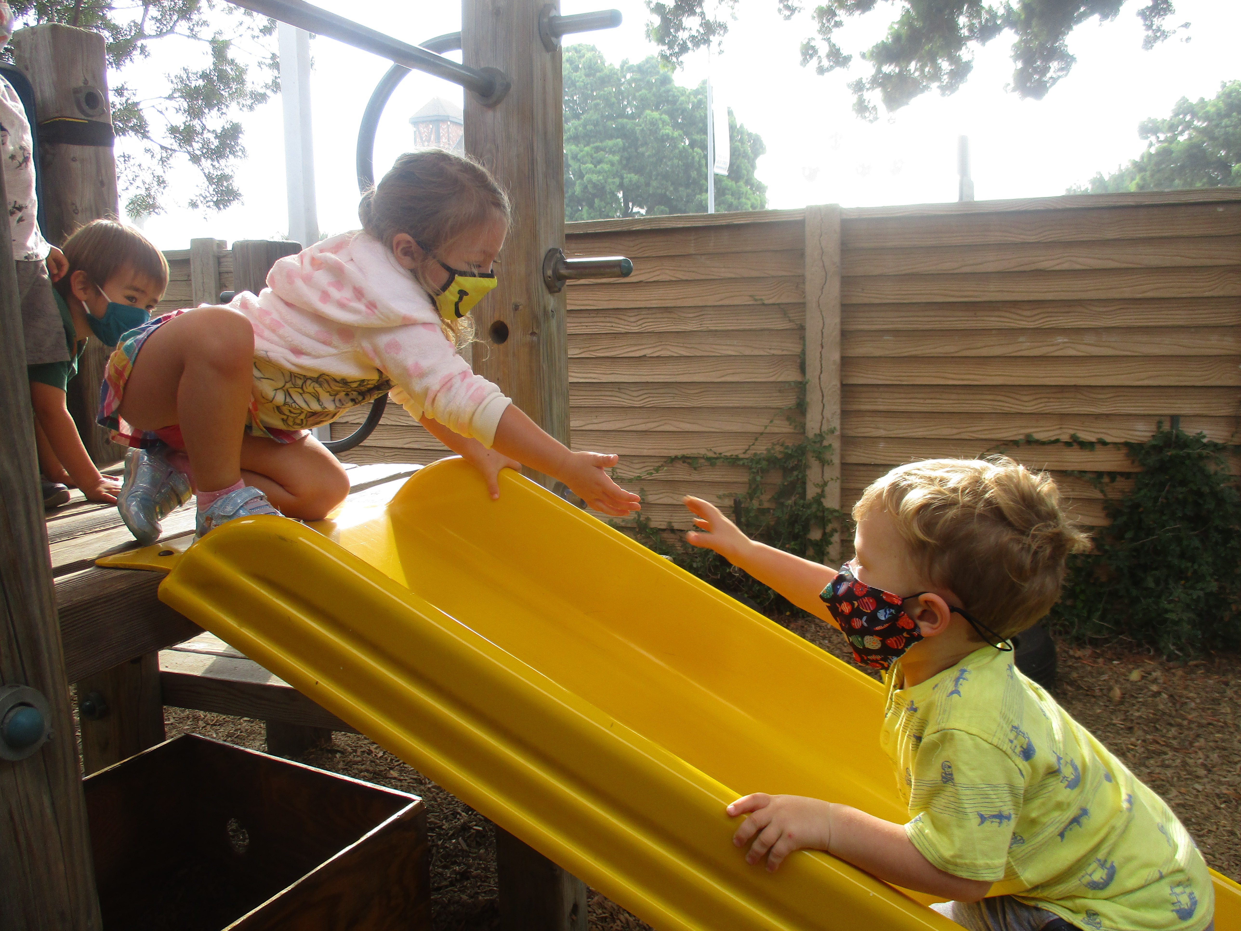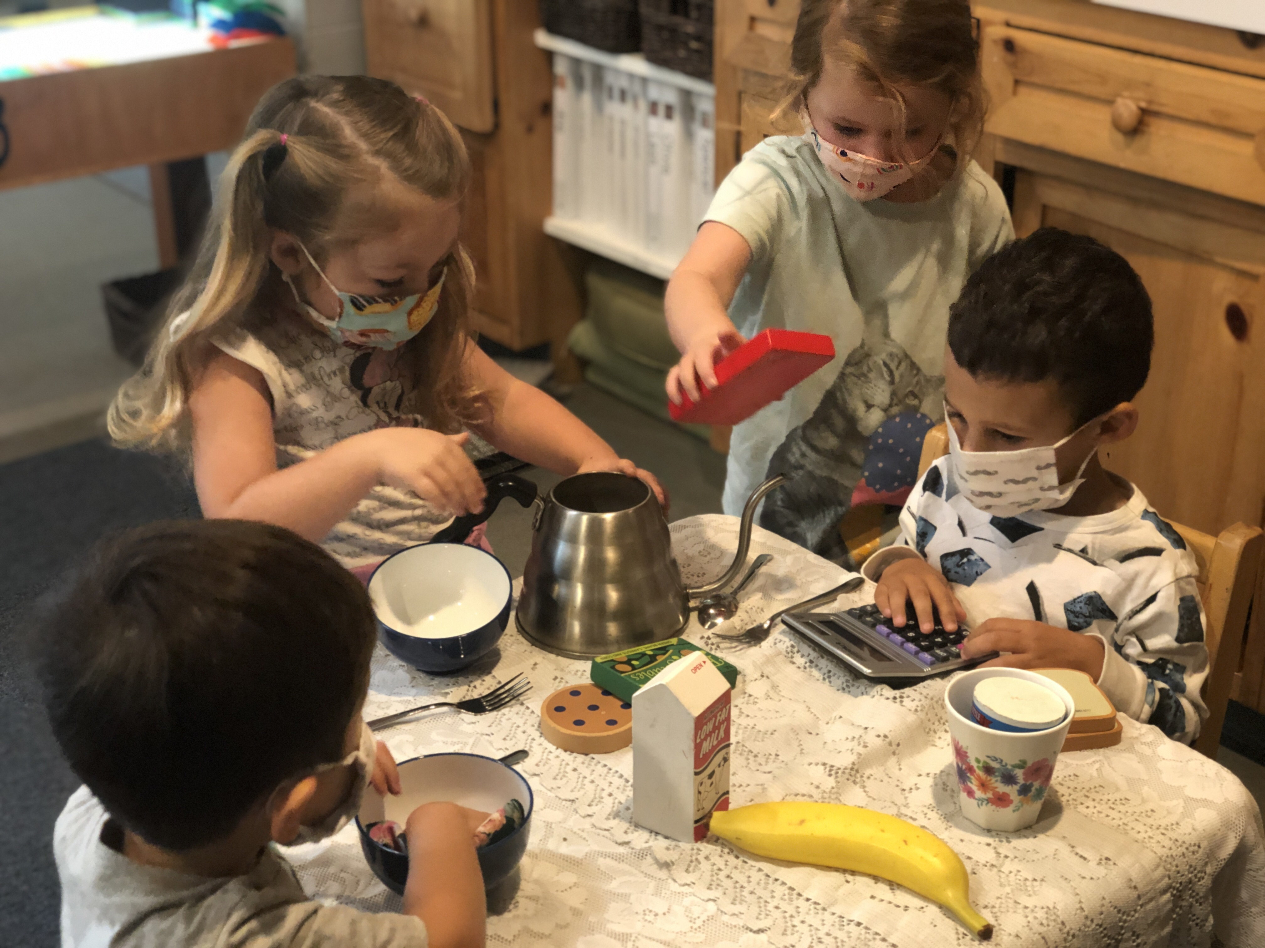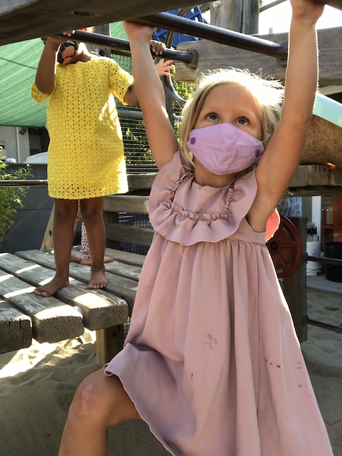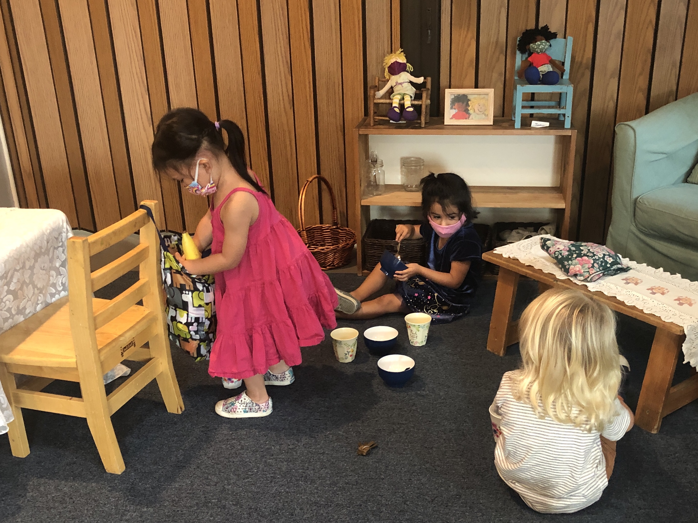 has been having fun developing their large motor skills as they use our scooters, trampoline and our new bike in the Middle Courtyard. Now the Sand Area has given us new challenges as we climb, try the monkey bars, push tractors through the sand, and pull heavy sand-filled wheelbarrows. We are also enjoying the rich sensory experiences that the sand offers such as digging, sifting, and pouring and, of course, cooking up delicious meals to serve one another and the many toy animals and fairies who live in this space. Our current plan is to use the Sand Area on Wednesday and Friday mornings. Also highly discussed is Halloween. This group is wanting to build a haunted house. In addition to pumpkins and gourds, they would love to add black cats, cobwebs, spiders, skeletons, and ghosts. If you happen to have any child friendly items to contribute, let us know and we will be very happy to put them to a spooky use.