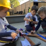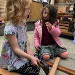 After having time to discuss, apply ideas to materials like wood and nails, then reflect again, the idea expands. We were delighted to hear the depth of knowledge about relationships that the children have. Caring disagreement and giving oneself time to reconnect after a disagreement are ideas we might have only applied to adult thinking. Perhaps because it’s only adults that we give time to. Slowing down our interactions with young children raises our image of their capabilities if we choose to see beyond the entry points that easily distract us. I mean, it’s pretty hard to set aside ‘love shrimp’ – especially when approaching Valentine’s Day and the gastronomic messages of love we anticipate! Cuteness delights while reflections often stun us into deeper connection. Wishing you a stunning Valentine’s Day and a well built love machine. – Kristin