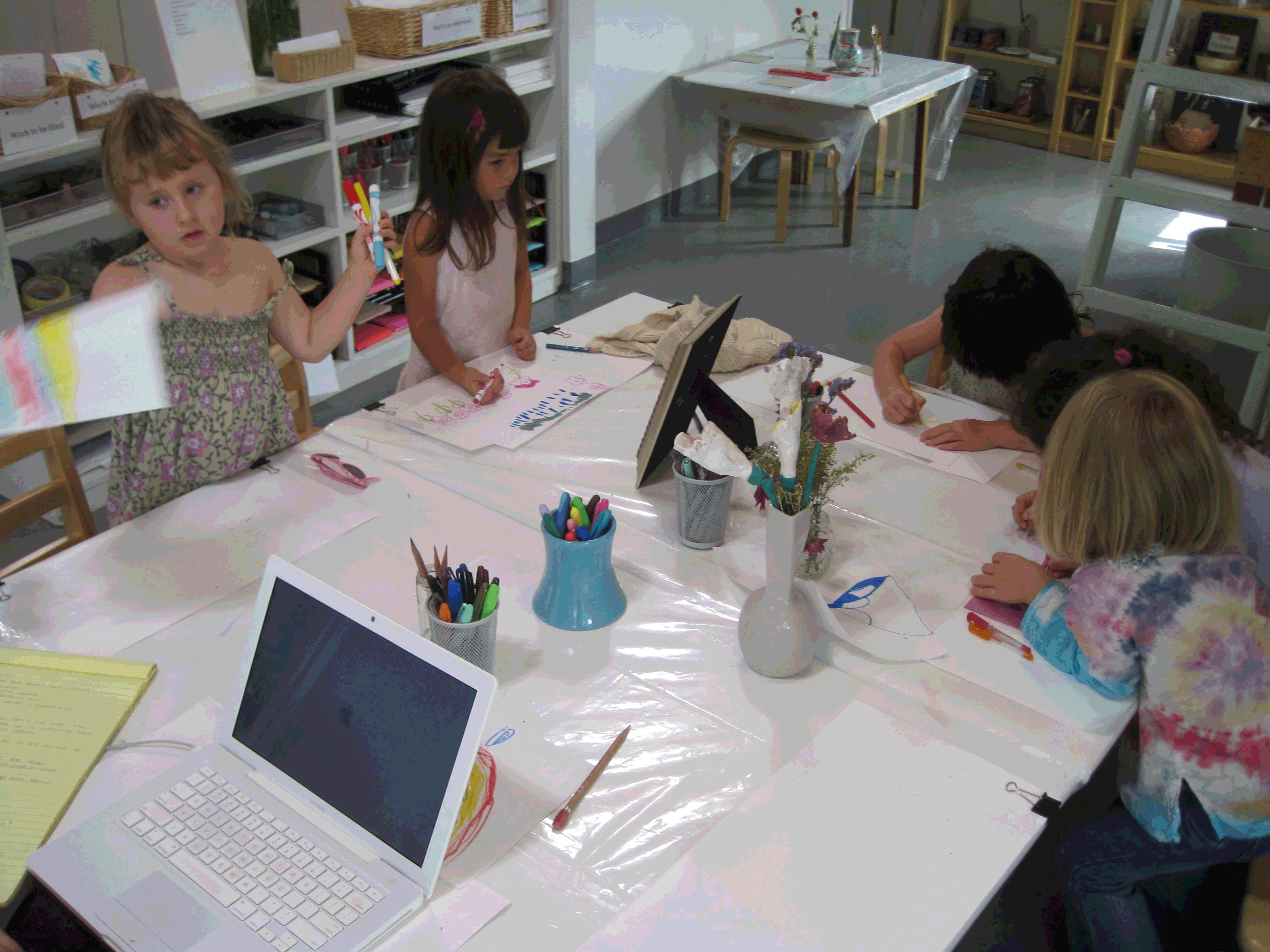 The children moved to the studio to draw their ideas for the curtain.