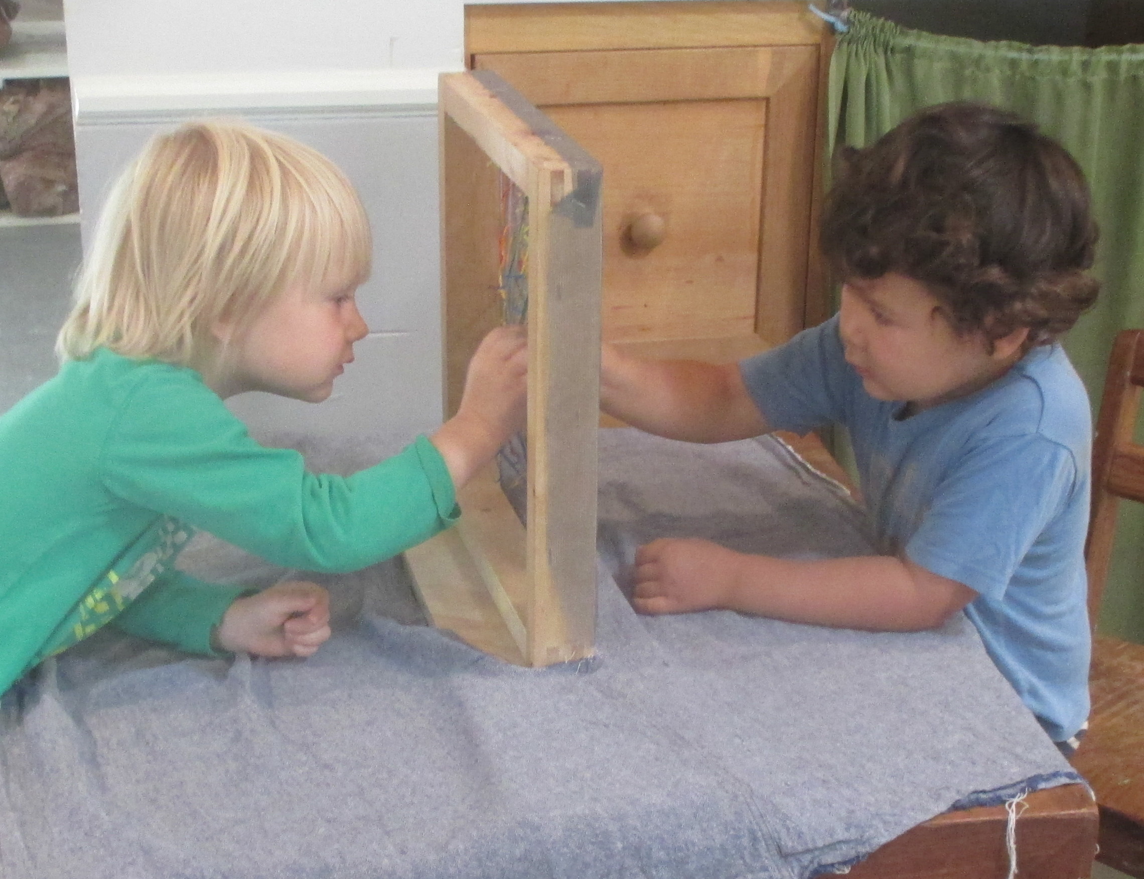 In the West Wing, one of our strategies to build a strong sense of community is to provide experiences that initiate collaborative, small group work. One of the ways we are doing this is through a weaving we call The Thread Game. The children explain how it is played: