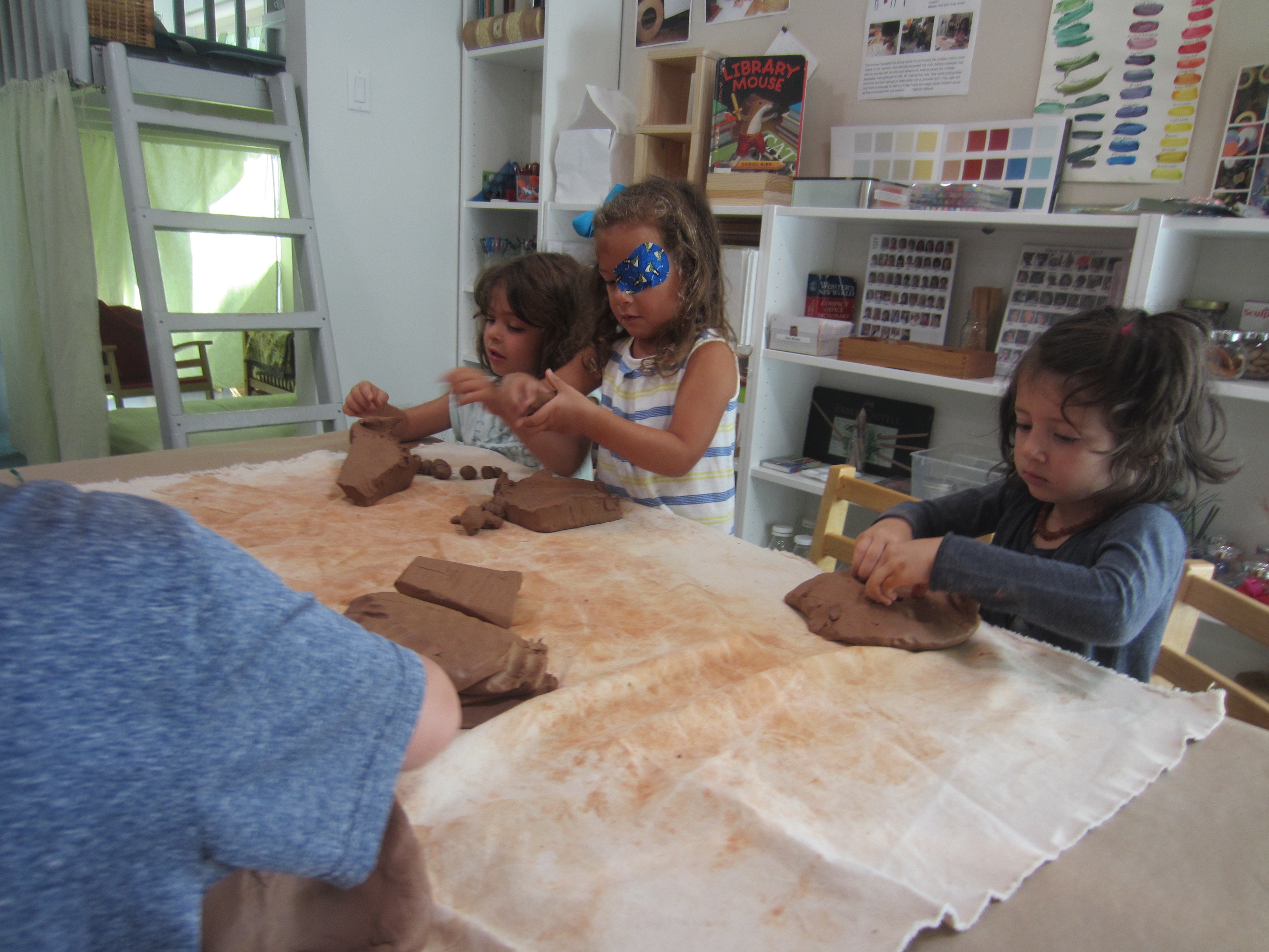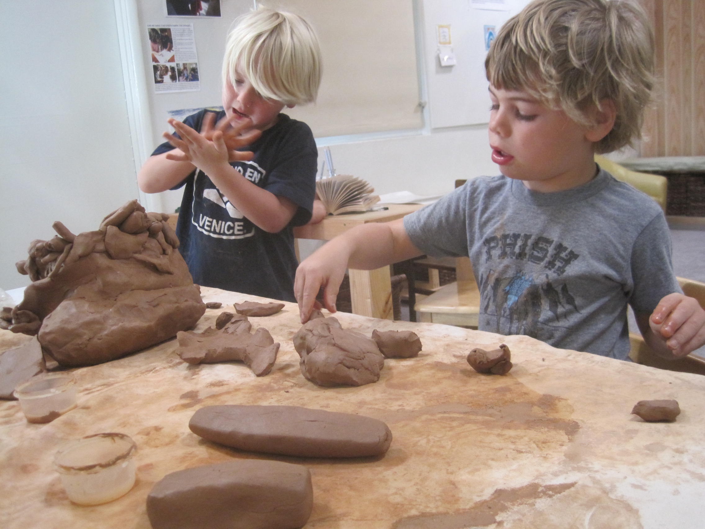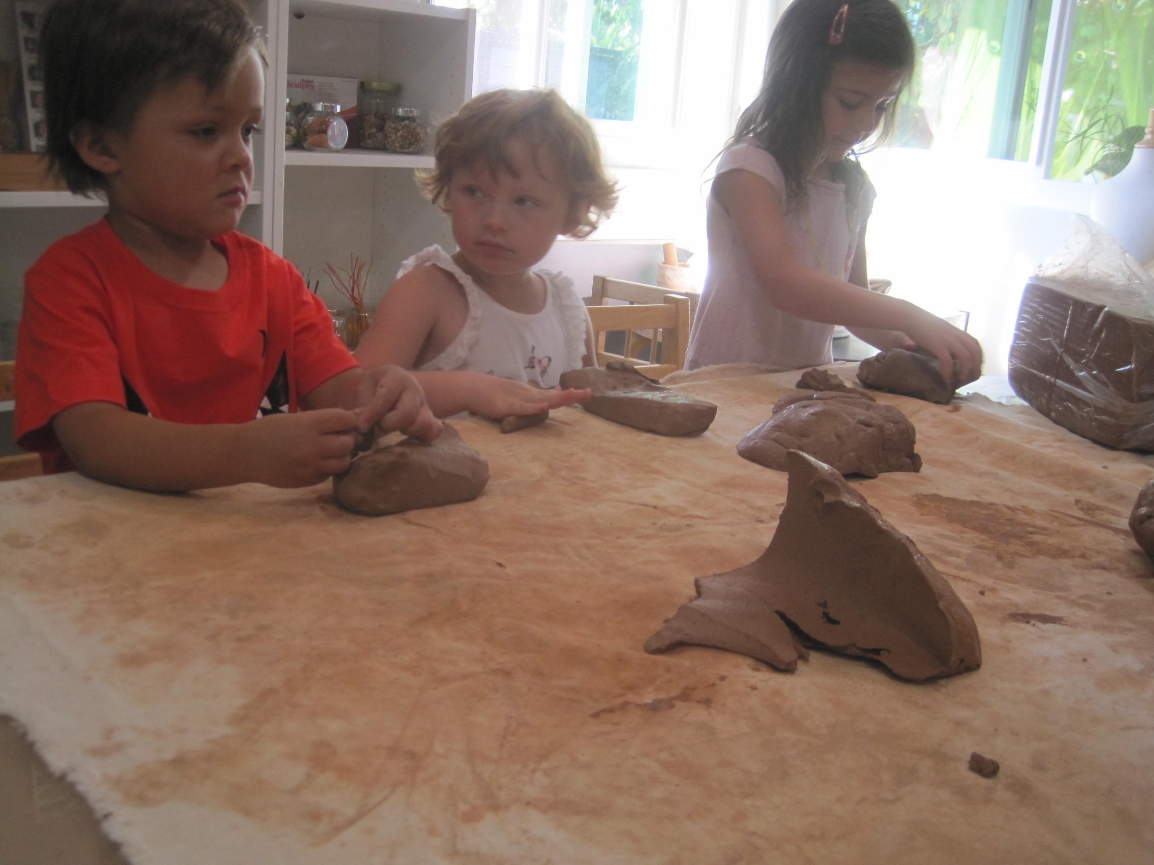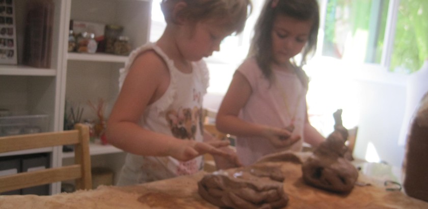 In the East Wing, we have brought the clay out. I wanted to see how the children would use the clay they are familiar with if they had only their hands as their tools. Working in groups of six I observed how the children interacted with the clay as well as supported them with added, descriptive vocabulary. Last week we were reminding ourselves, through hands on familiarization, of what we knew about clay.